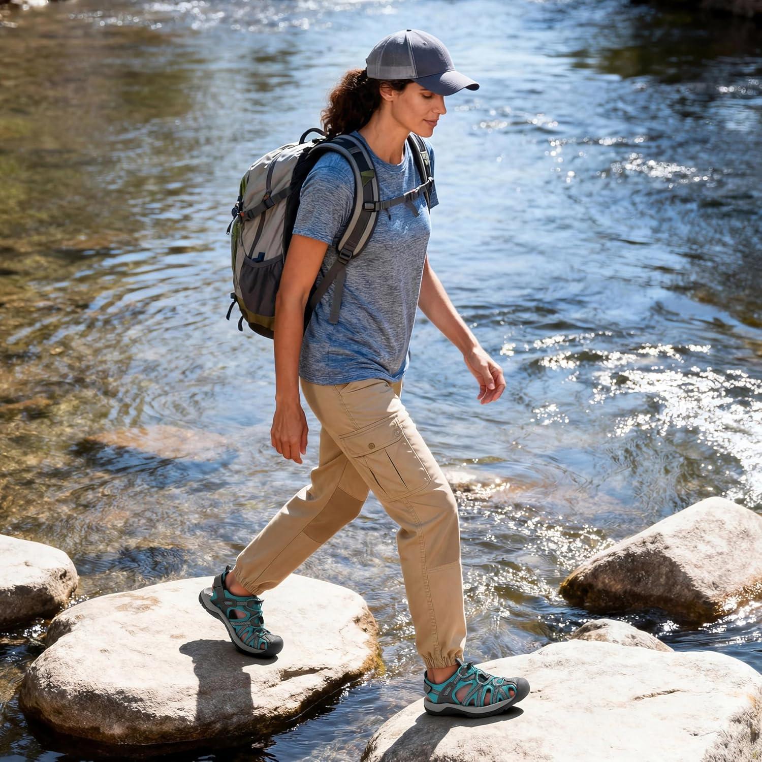 imageDREAM PAIRS Womens Hiking Sandals Adventurous Summer Sports Shoes OutdoorGreyBlue