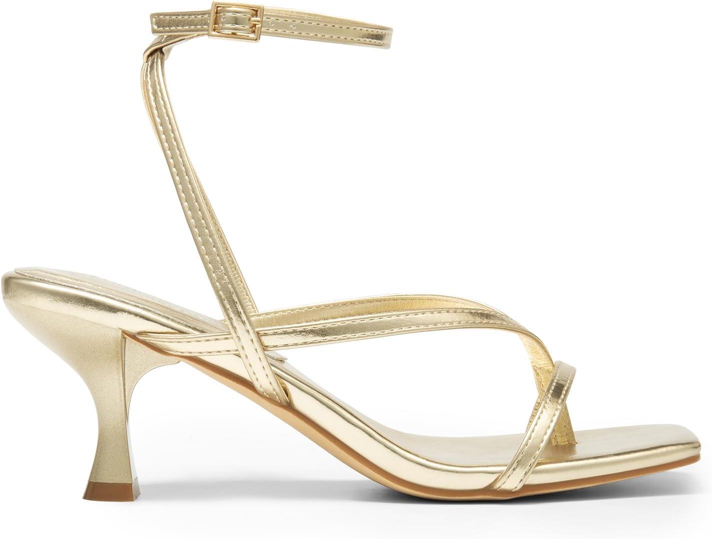 DREAM PAIRS Women's kitten Low Strappy Lace Up Heels Open Square Toe Thong Ankle Strap Heels Sexy Fashion Comfort Dress Shoes Party Sylvestra Pumps Heeled Sandals(Gold-pu)