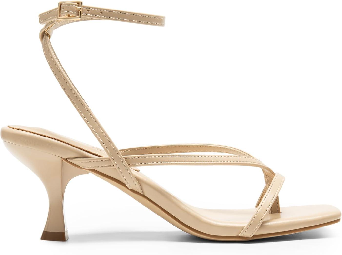 DREAM PAIRS Women's kitten Low Strappy Lace Up Heels Open Square Toe Thong Ankle Strap Heels Sexy Fashion Comfort Dress Shoes Party Sylvestra Pumps Heeled Sandals(Nude-pu)