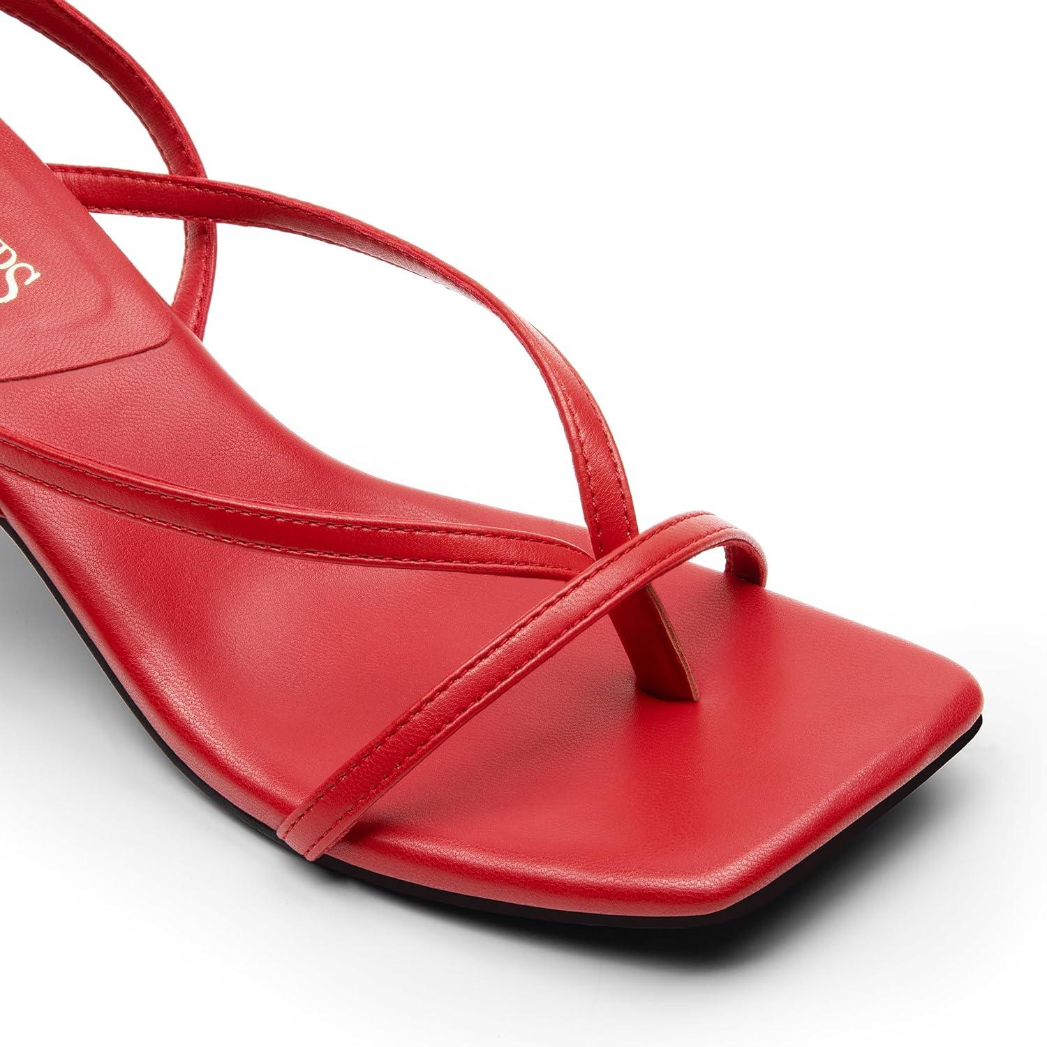 DREAM PAIRS Women’s kitten Low Strappy Lace Up Heels Open Square Toe Thong Ankle Strap Heels Sexy Fashion Comfort Dress Shoes Party Sylvestra Pumps Heeled Sandals(Red-pu)