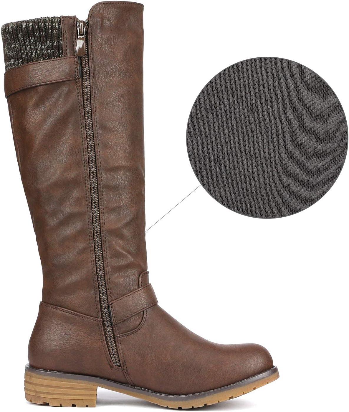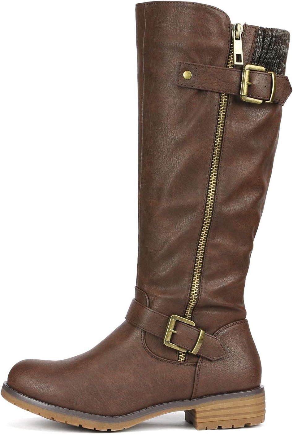 DREAM PAIRS Women's Knee High Boots Comfortable Riding Boots Side Zipper Fall Boots with Buckle(Brown)