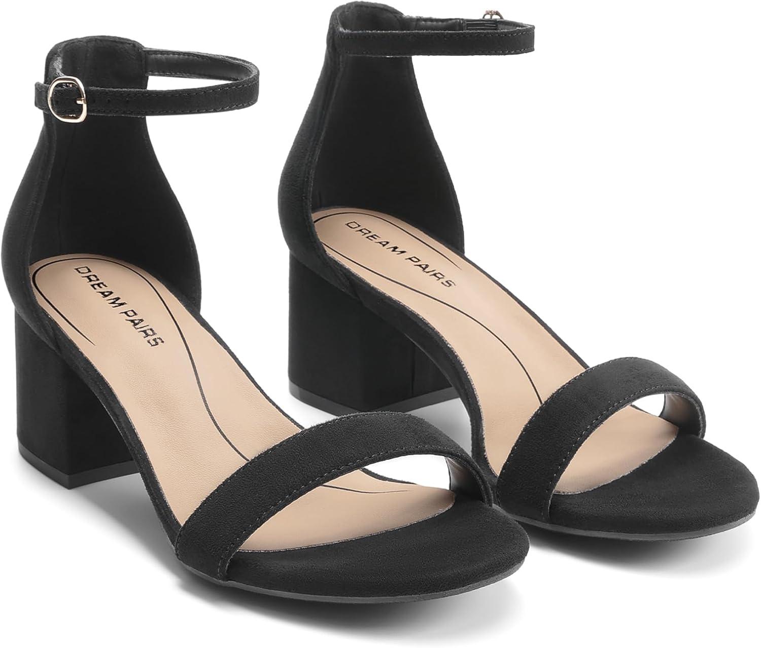 imageDREAM PAIRS Womens LowChunk Low Heel Pump SandalBlacksuede