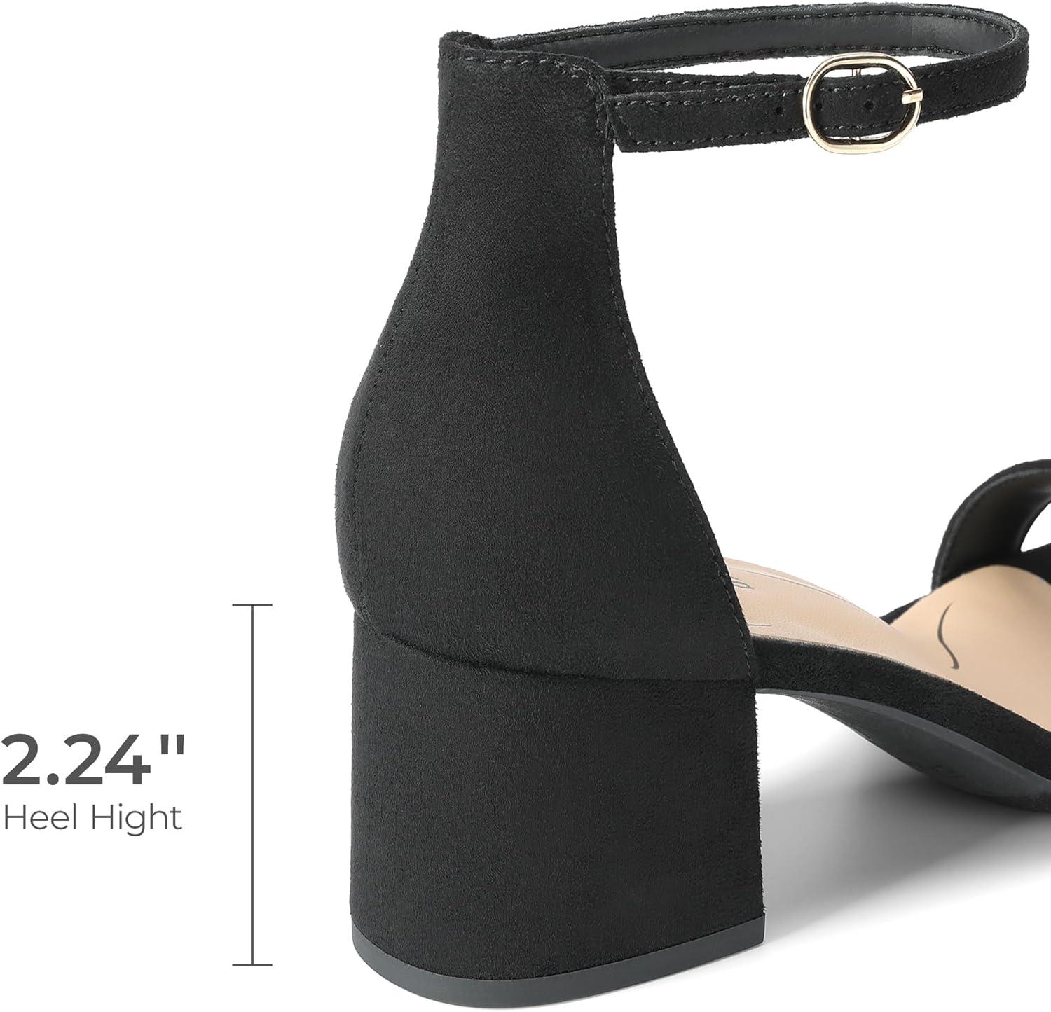 DREAM PAIRS Womens Low-Chunk Low Heel Pump Sandal(Black-suede)
