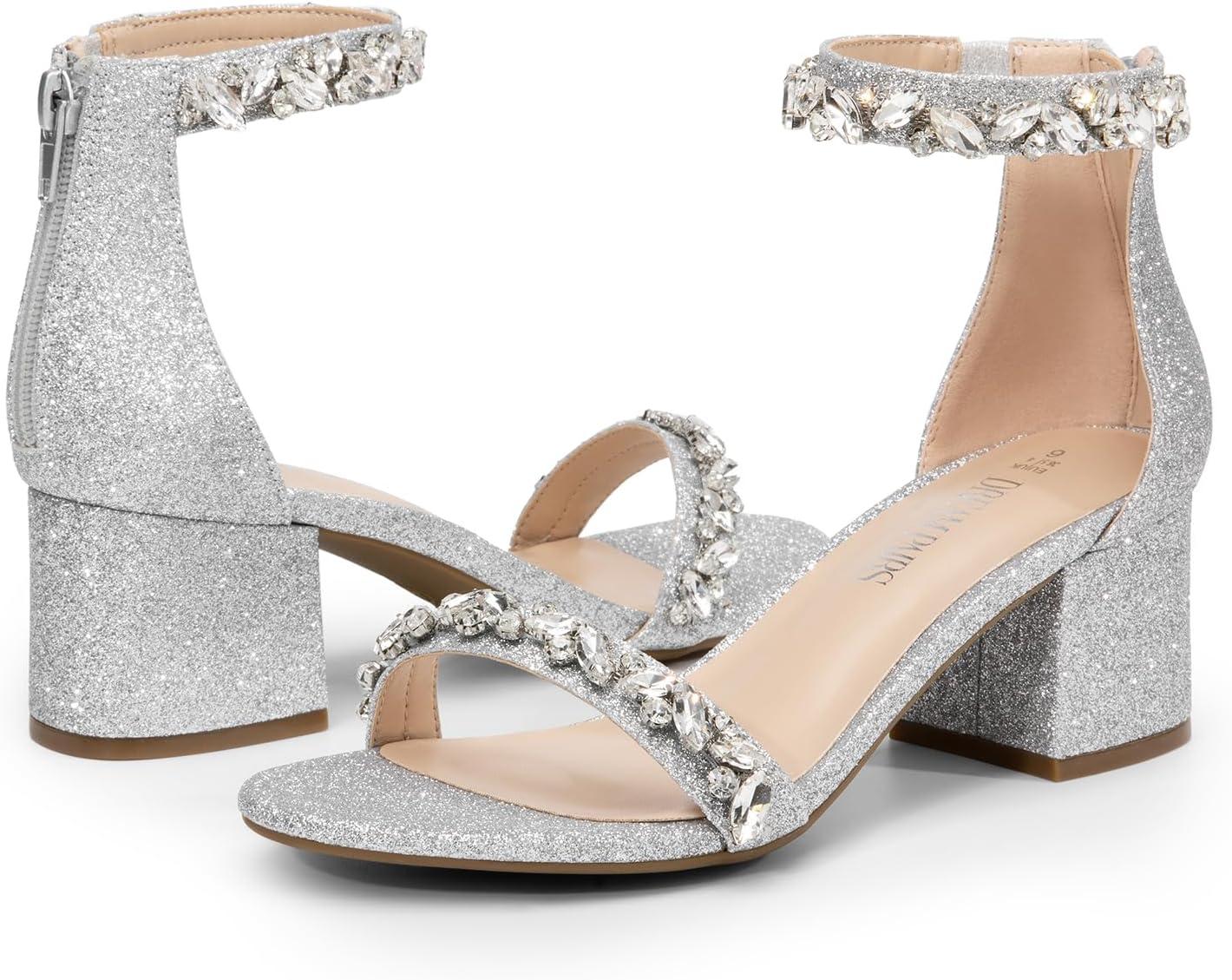 imageDREAM PAIRS Womens LowChunk Low Heel Pump SandalSilverglitter