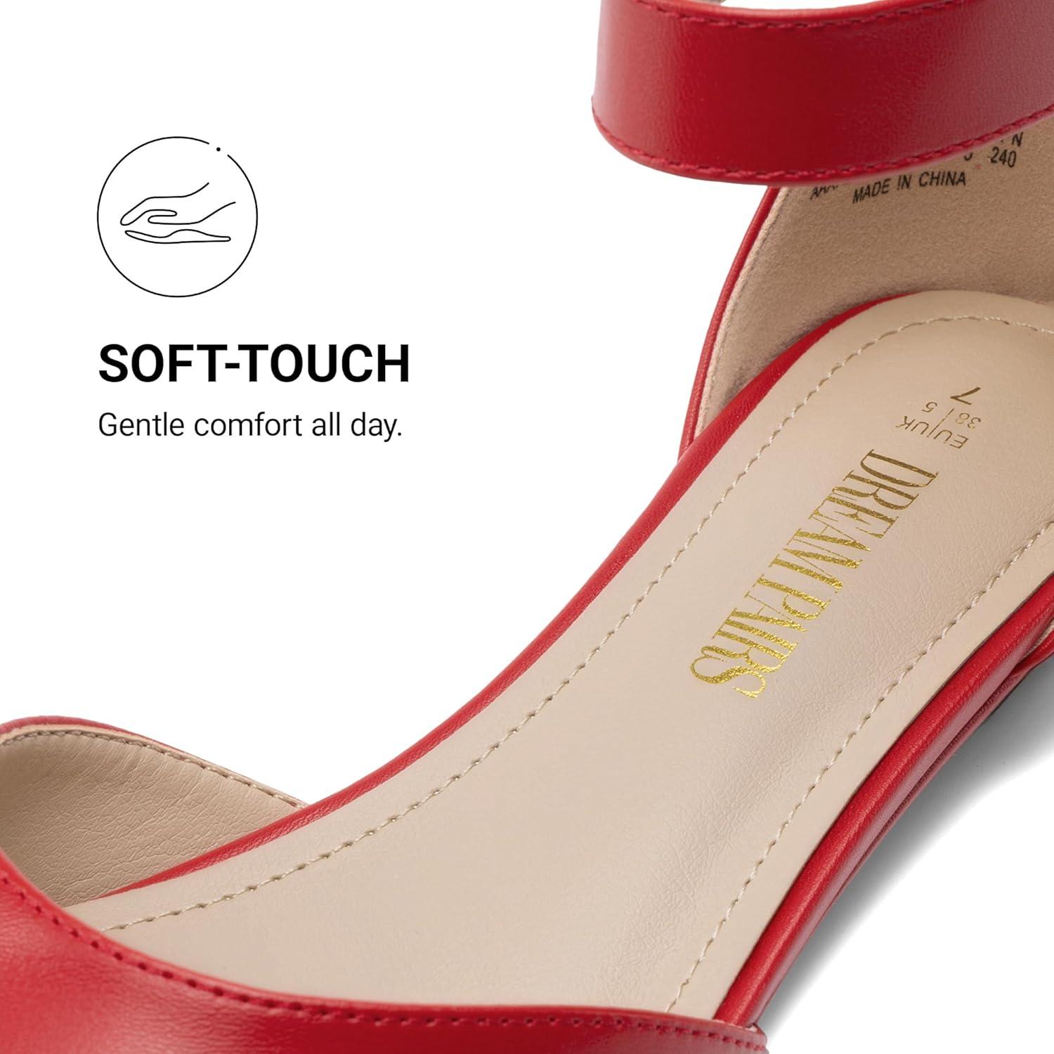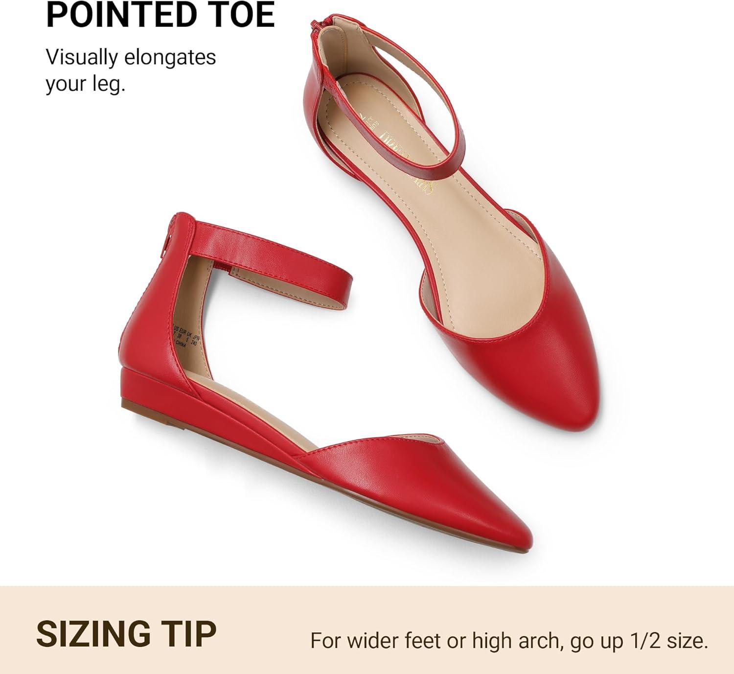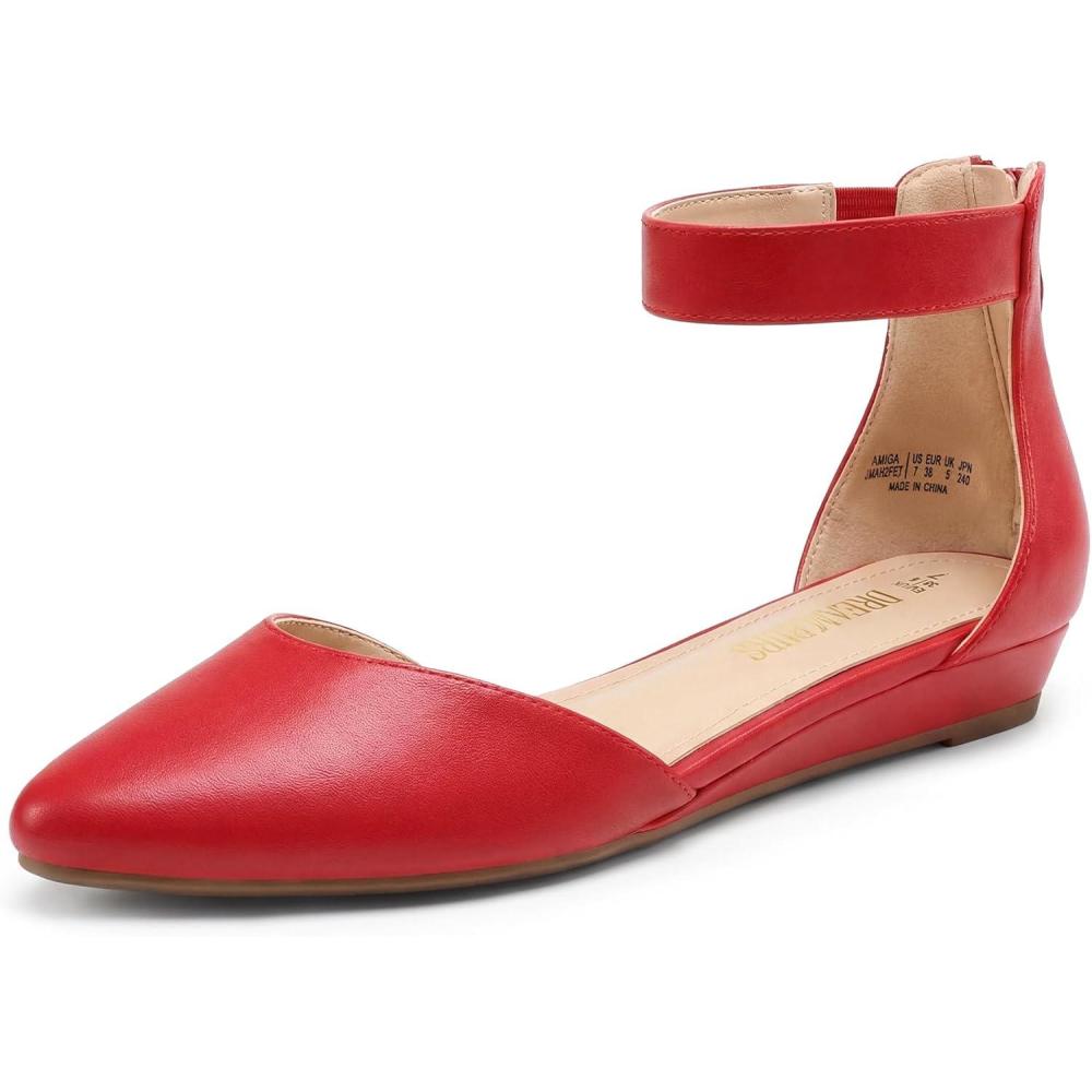 imageDREAM PAIRS Womens Low Wedge Pointed Toe Ankle Strap Dress Comfortable Casual Flats ShoesRedpu1