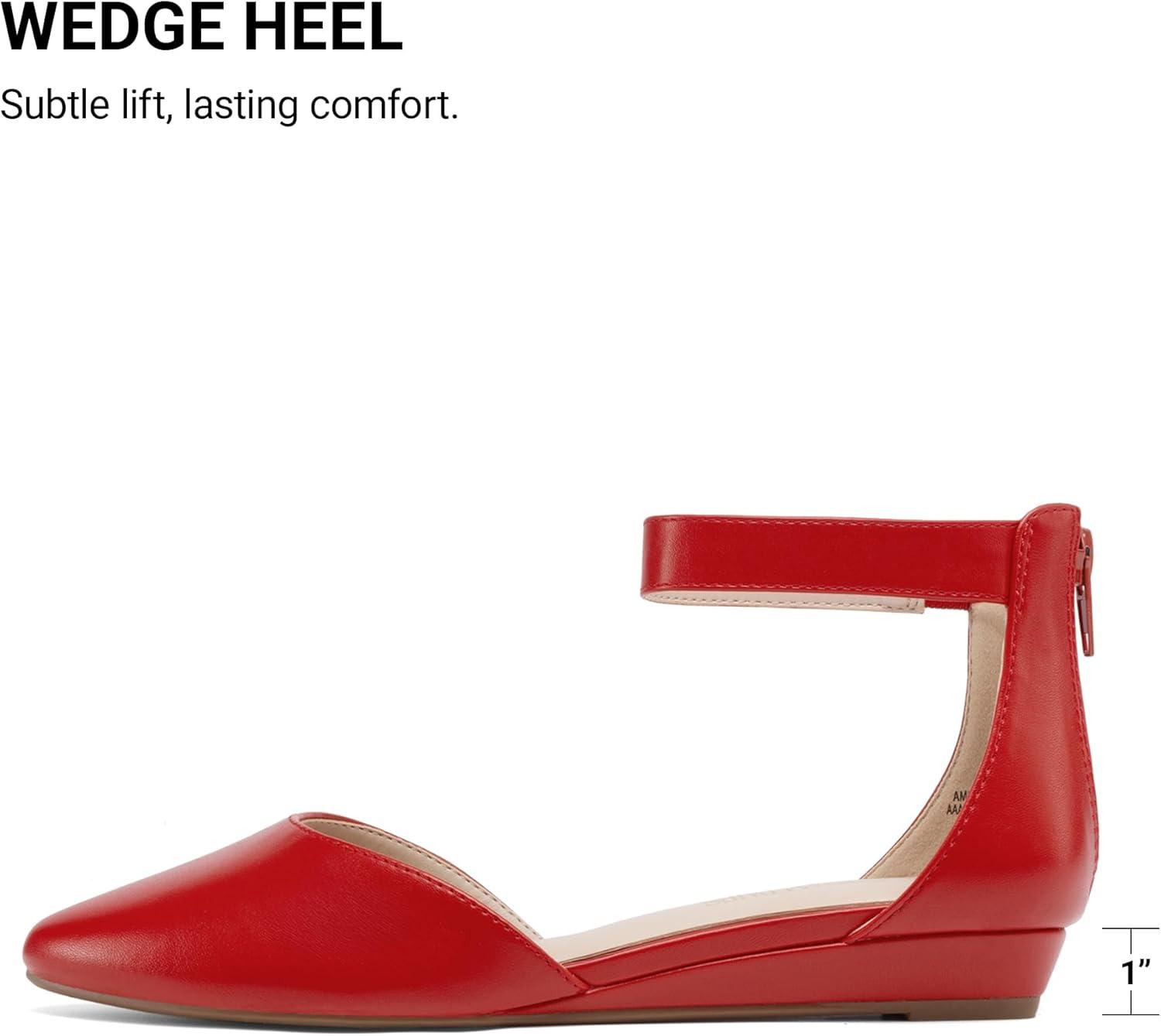DREAM PAIRS Women’s Low Wedge Pointed Toe Ankle Strap Dress Comfortable Casual Flats Shoes(Red-pu-1)