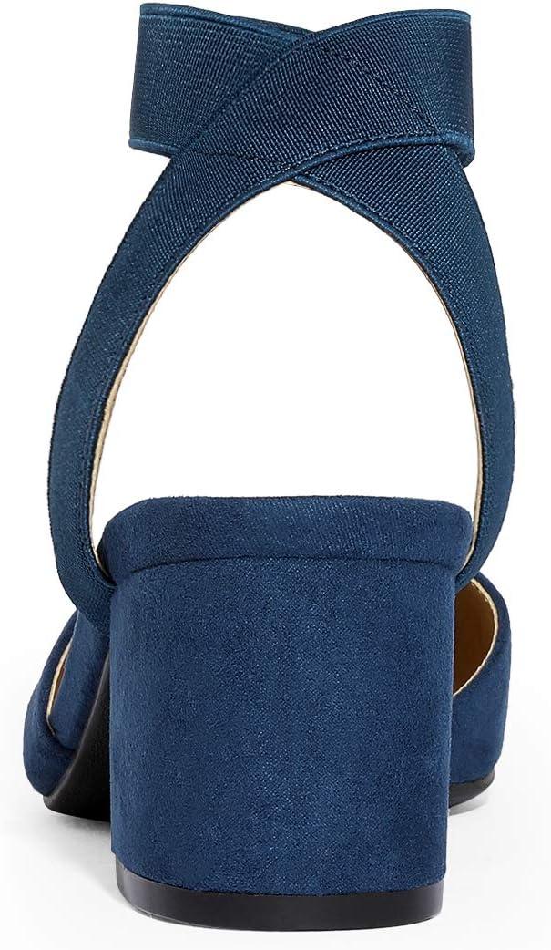 DREAM PAIRS Women’s Nicholes Low Block Heel Pumps(Navy/Suede)