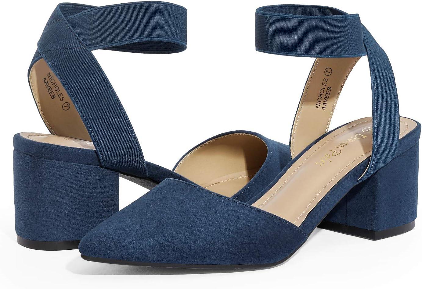 DREAM PAIRS Women's Nicholes Low Block Heel Pumps(Navy/Suede)
