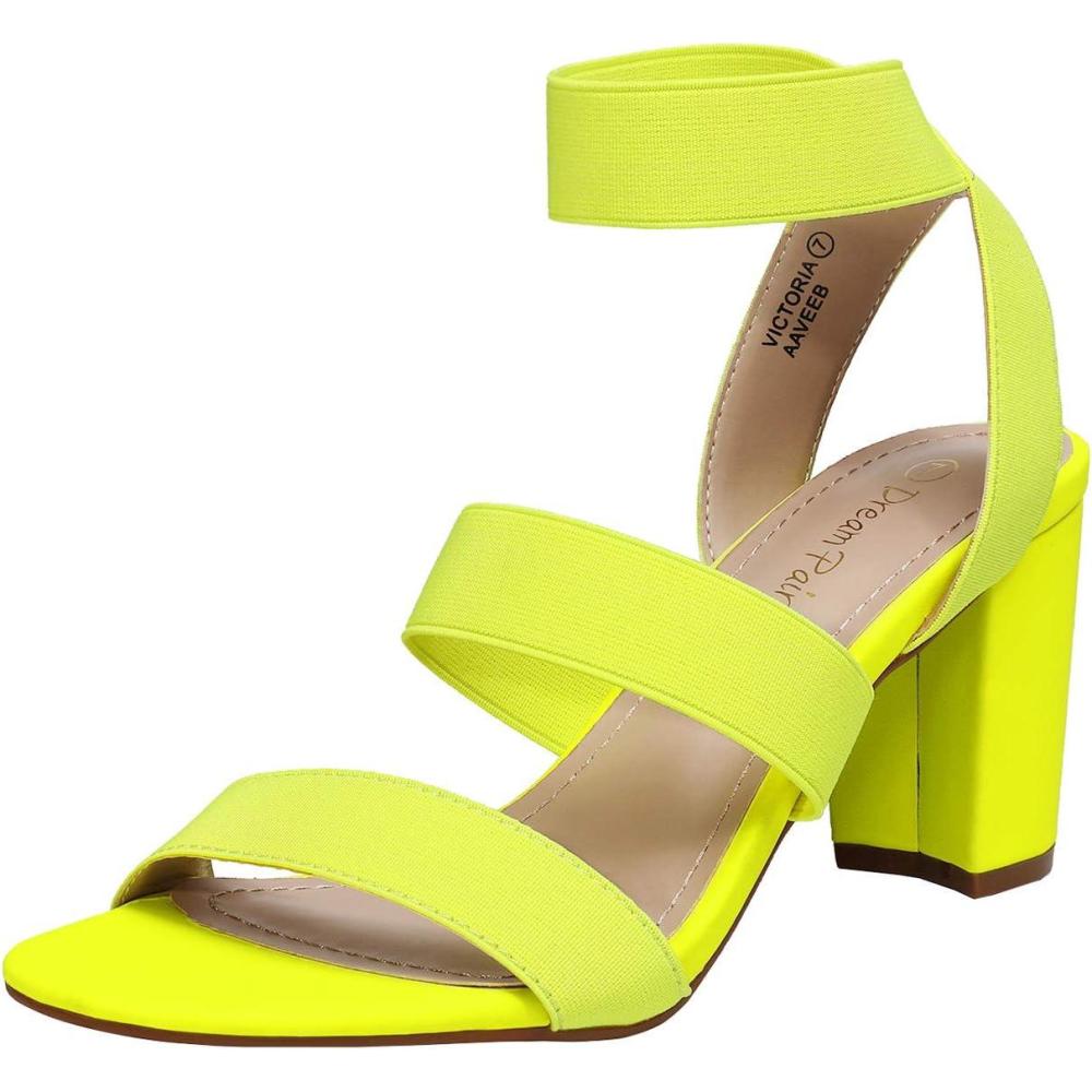 DREAM PAIRS Women’s Open Toe High Chunky Elastic Strap Dress Heel Sandals(Neon/Lime)
