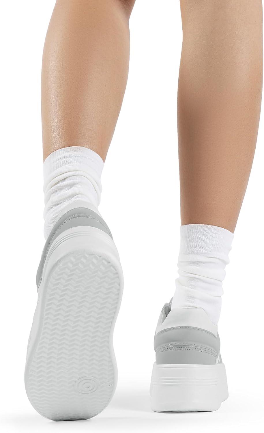 DREAM PAIRS Women’s Platform Casual Sneakers(White/Grey)