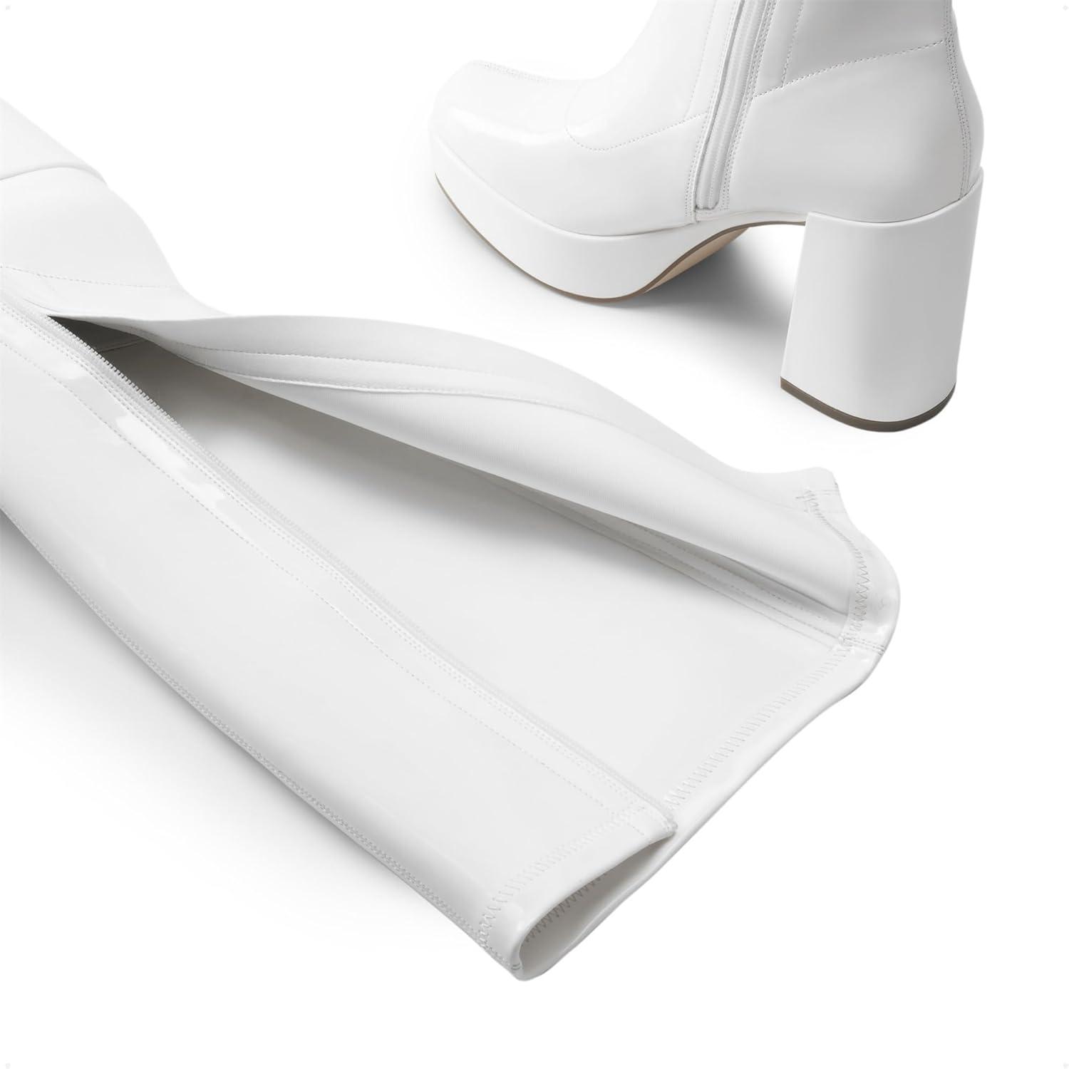 DREAM PAIRS Women’s Platform Knee High Boots Chunky Block Heel Side Zipper Cute Gogo Boots(White-pat)