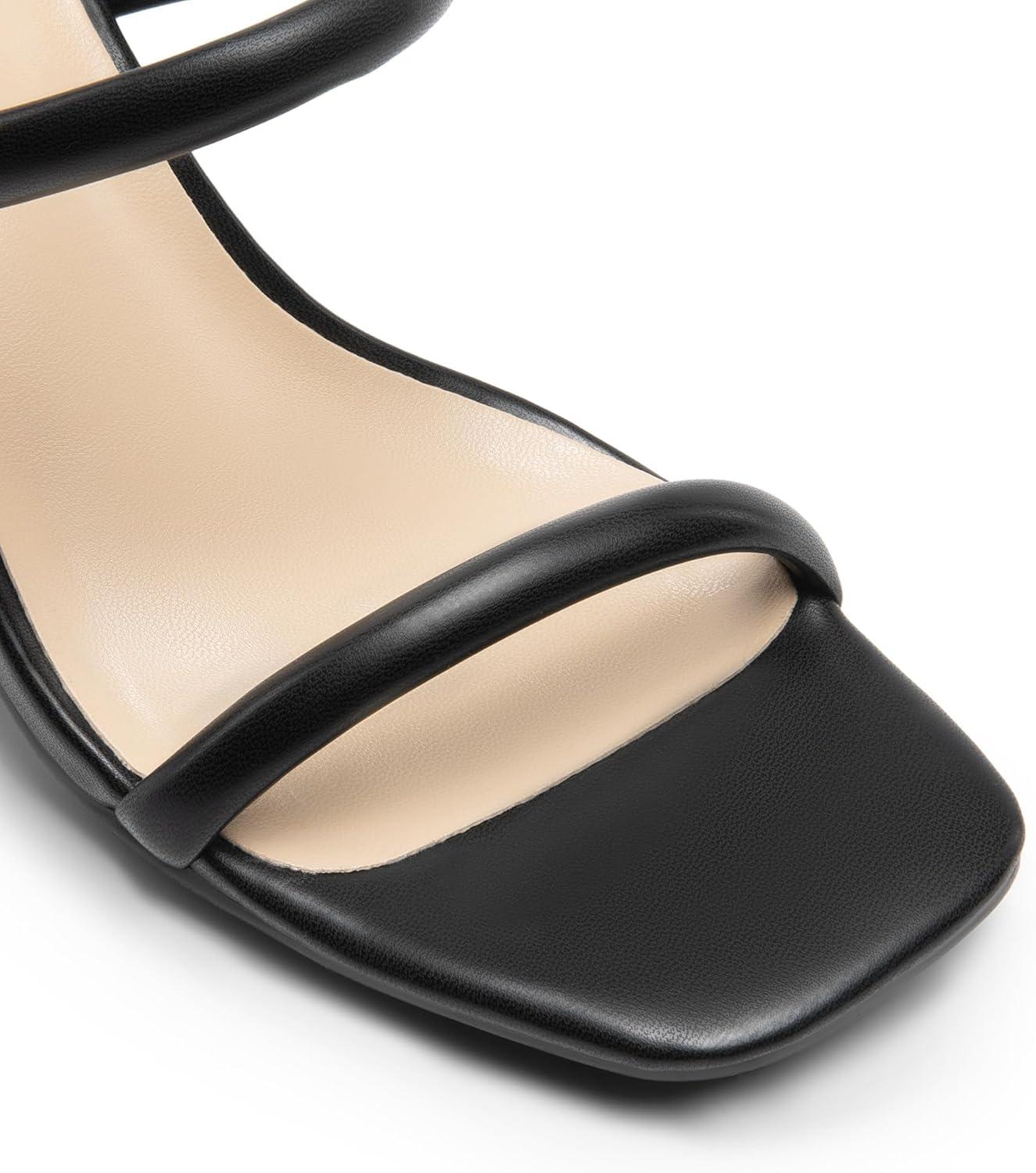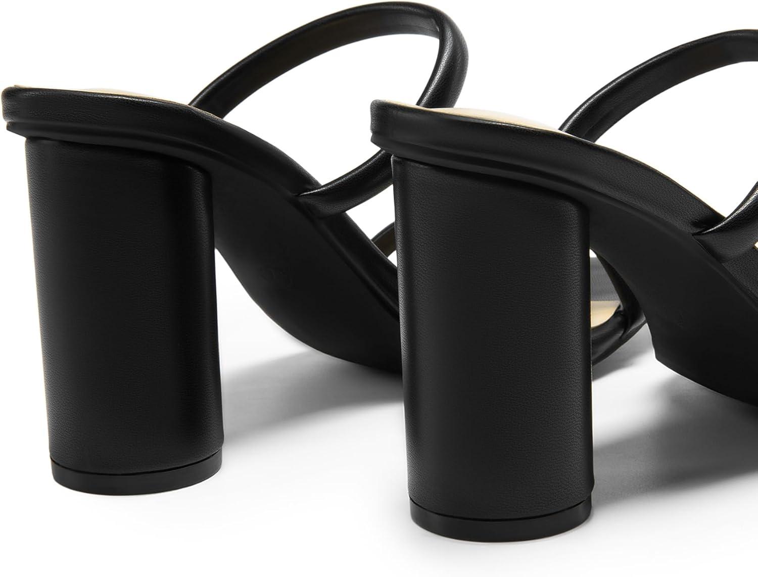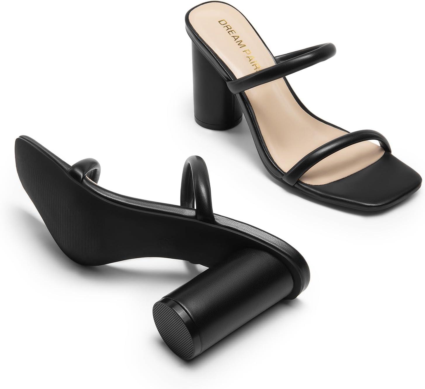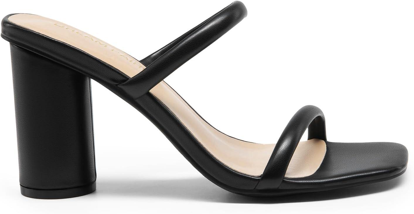 DREAM PAIRS Women’s Square Open Toe Block Heels Two Strap Slip On High Heeled Slides Sandals(Black)