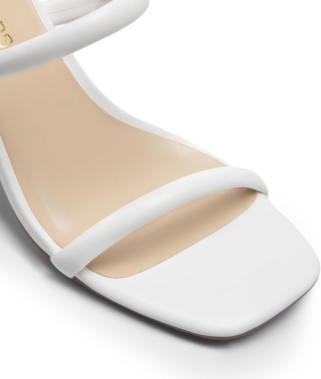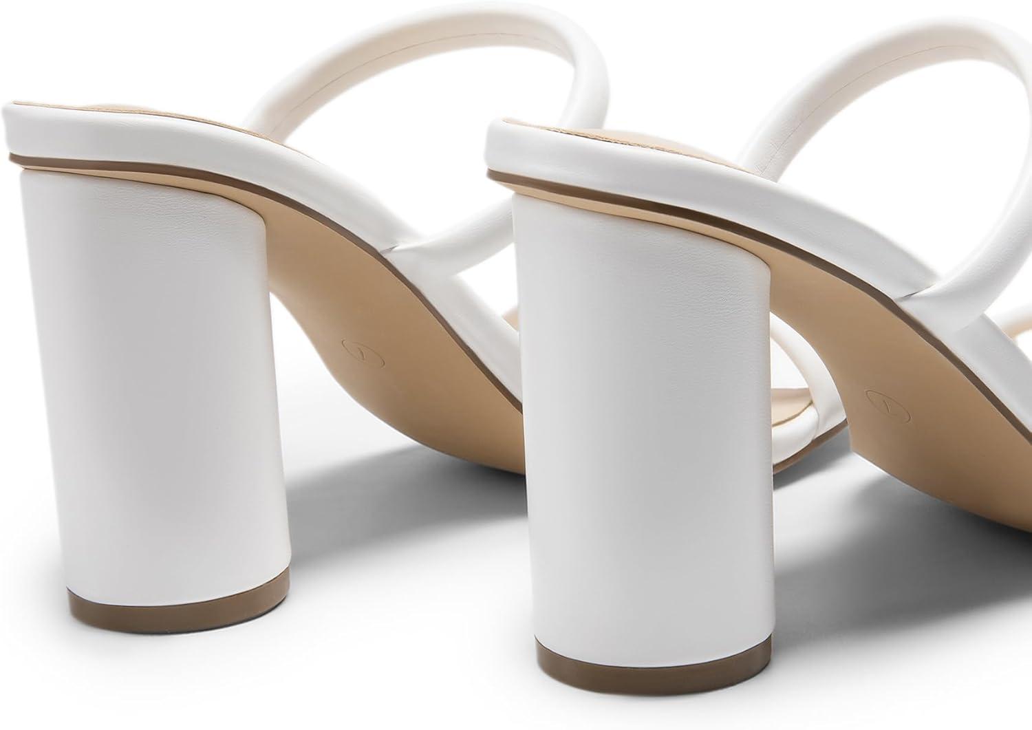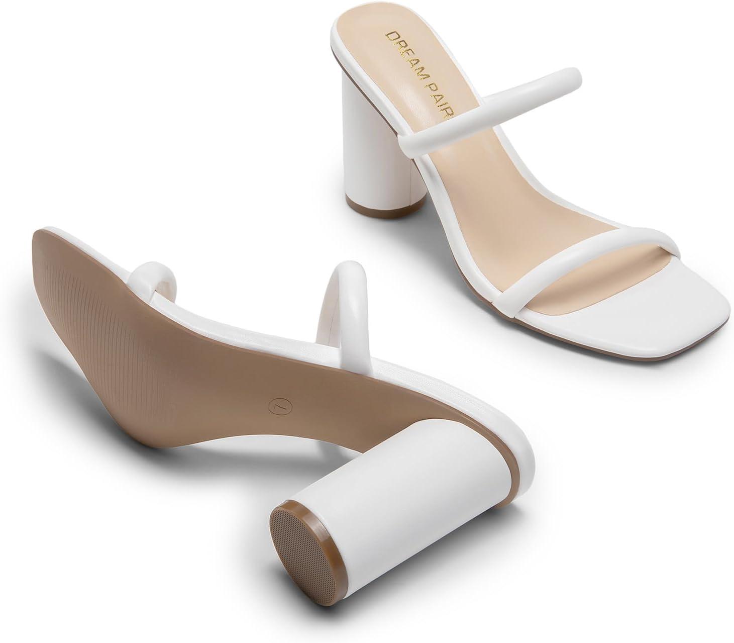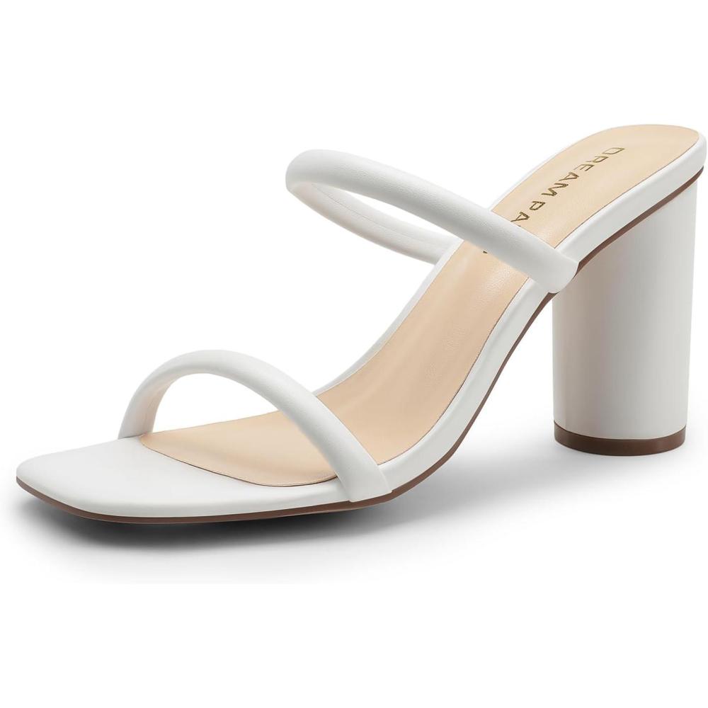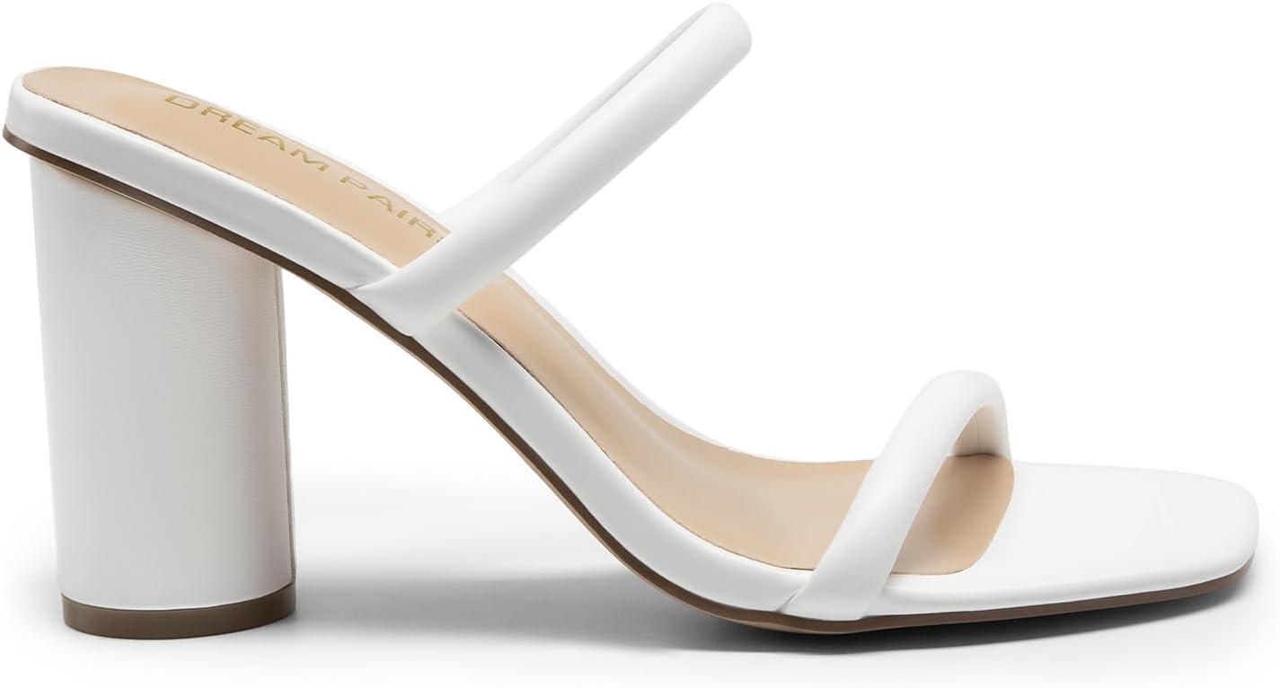 DREAM PAIRS Women’s Square Open Toe Block Heels Two Strap Slip On High Heeled Slides Sandals(White)