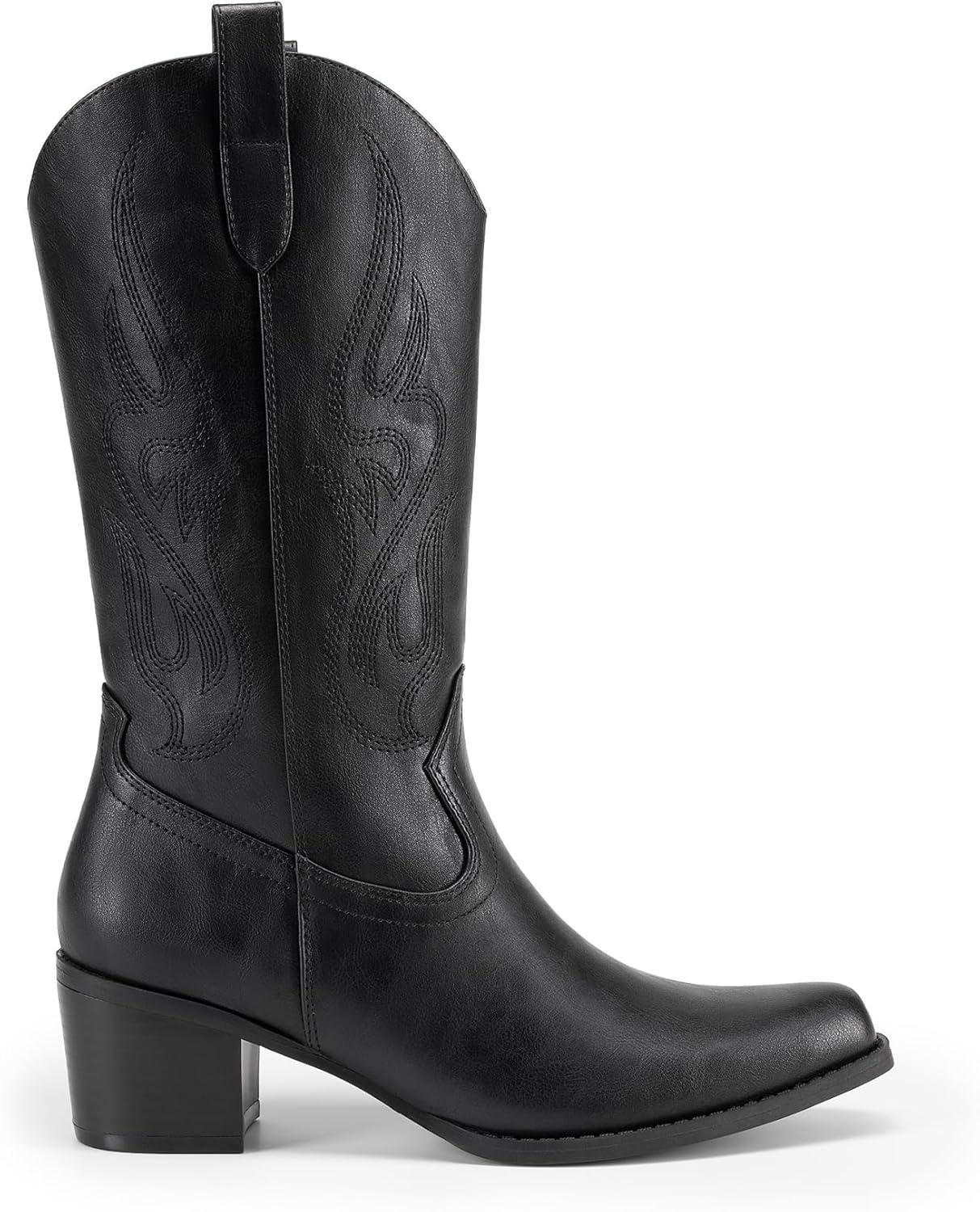 DREAM PAIRS Women’s Square Toe Cowboy Mid Calf Western Boots(Black-pu)